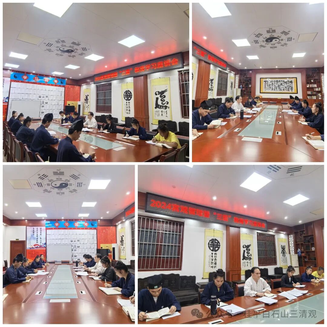 在座谈会议上,首先安排部署了全市道教界2024年开展宫观规范化管理工作汇报公示及“三爱”(爱党、爱国、爱社会主义)主题教育学习的工作要求;组织学习了习近平总书记有关宗教工作的重要论述及全国宗教工作会议精神。