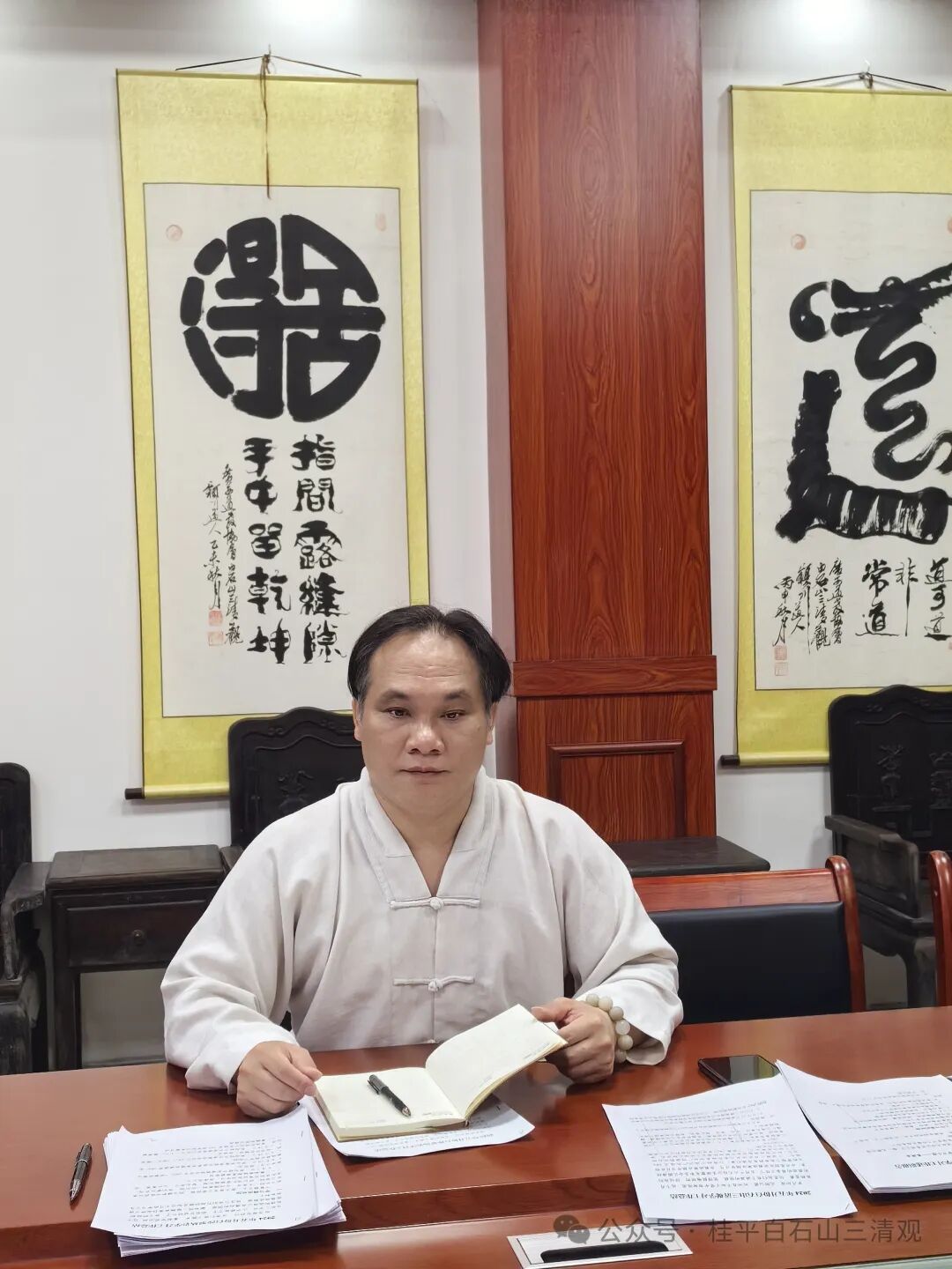 2024年7月3日,桂平市道教协会召开加强宫观规范化管理暨“三爱”(爱党、爱国、爱社会主义)教育学习座谈会。白石山三清观、会仙岩、白沙罗丛岩道众代表参加座谈学习。广西道教协会副会长、桂平市道教协会会长陈应伟道长主持座谈会。