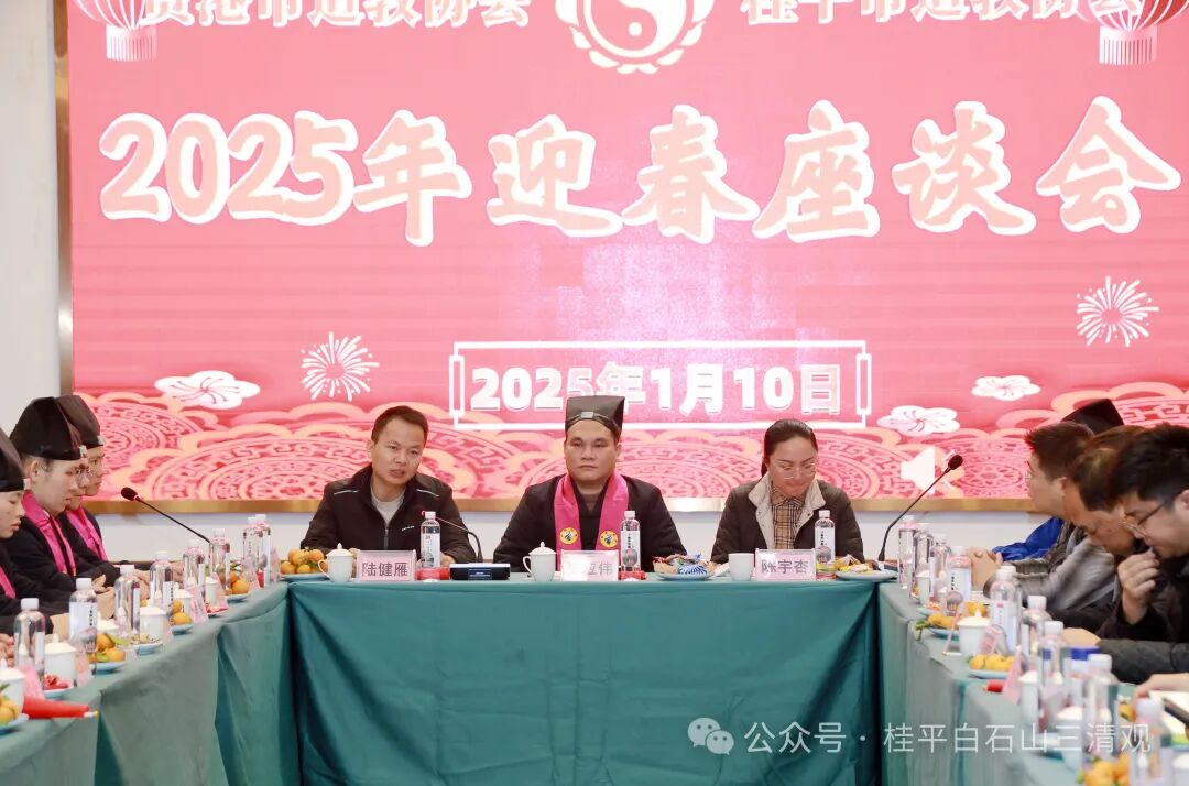 出席参加座谈会的道众代表在签到 出席参加座谈会的道众亲切交谈 工作人员热情、认真做好接待、引导工作 广西贵港市(桂平)道教协会2025年迎春座谈会一景(一) 广西贵港市(桂平)道教协会2025年迎春座谈会一景(二) 广西贵港市(桂平)道教协会2025年迎春座谈会一景(三)