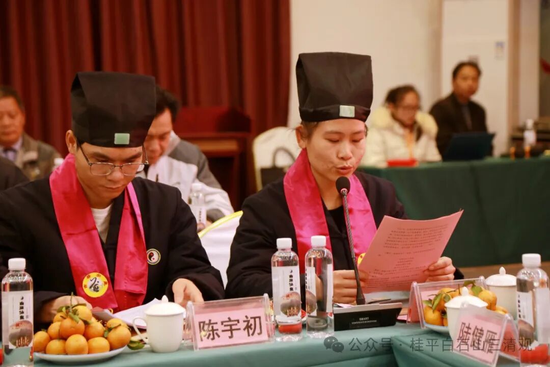 贵港市民宗委宗教科陆健雁(左一)桂平市民宗局局长陈宇杏(右一)、广西道教协会副会长、贵港市道教协会会长、桂平市道教协会会长陈应伟道长(左二) 道众代表在座谈会上发言 2024年先进单位和先进个人合影 全体人员大合唱《歌唱祖国》