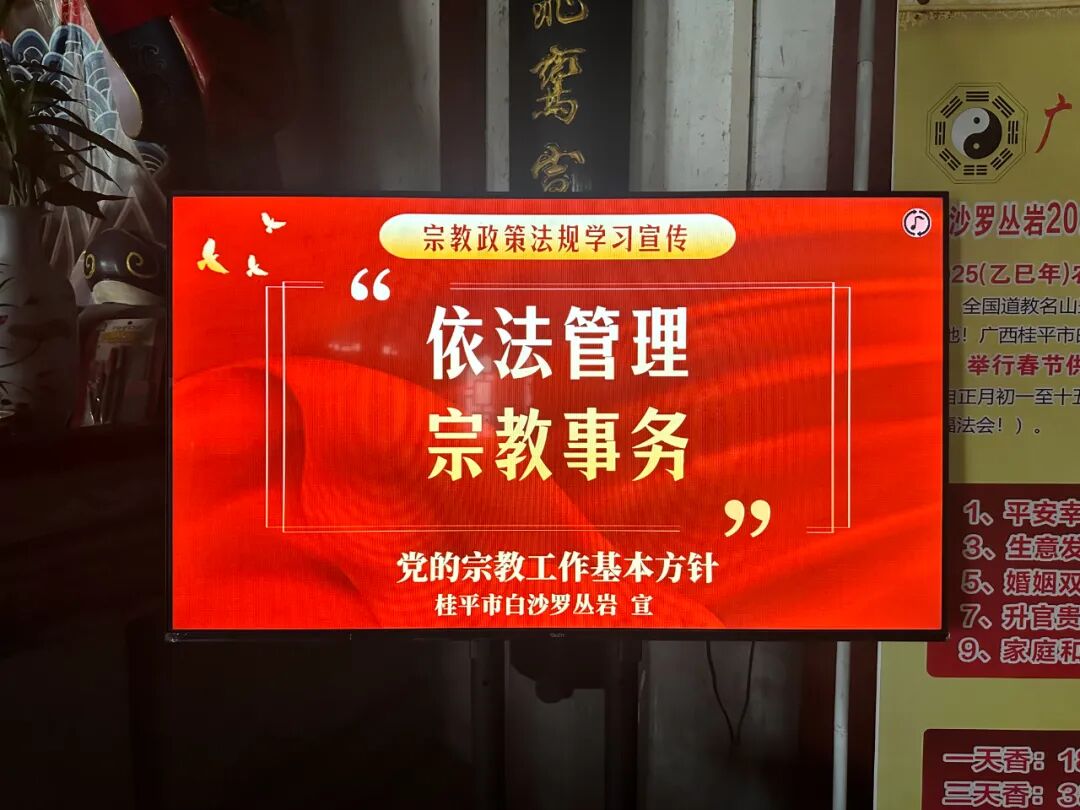 在“宗教政策法规学习月”宣传活动中,桂平市道教协会持续加大对《宗教事务条例》等宗教政策法规的宣传普及力度。通过悬挂宣传横幅、多媒体宣传、收看视频讲解、测试、参加学习培训班等多种形式,面向信众宣传习近平总书记关于宗教工作的重要论述等内容。各宫观还结合“三爱”“五进”等工作开展宣传活动,积极引导广大信众参与到学习宗教政策法规知识活动中。这一系列举措,提高了全市道教界对学习宗教政策法规、维护民族团结与宗教和睦的认识水平,营造出尊法学法用法的良好氛围。
