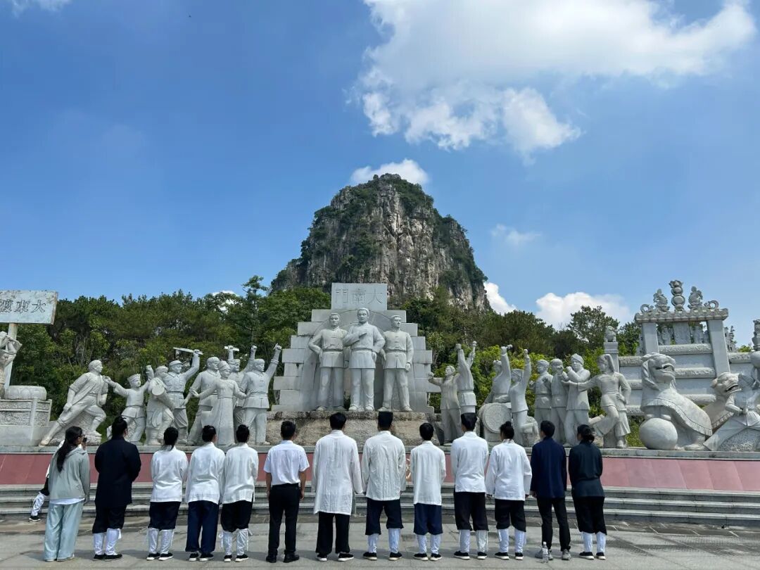 随后,一行人来到贵港市革命烈士纪念碑前。纪念碑巍峨耸立,庄严肃穆。在纪念碑前,陈应伟道长带领全体成员肃立默哀,集体向抗战英烈表达了深切的哀悼和崇高的敬意。