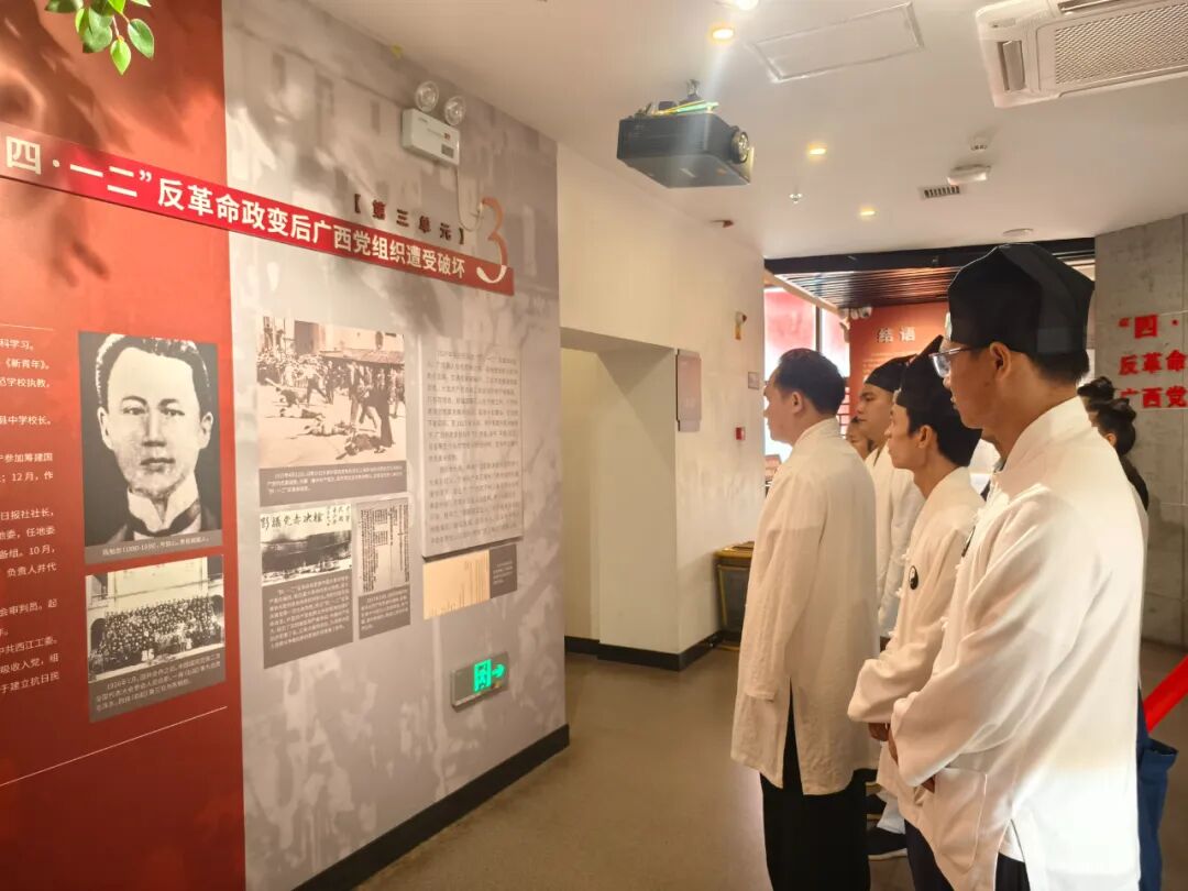 在中共广西一大旧址,贵港市道教协会的成员们首先来到了纪念馆。这里陈列着大量珍贵的历史文物和图片,生动再现了老一辈革命先烈在广西及贵港地区英勇抗击日寇的光辉历程。大家驻足观看,深受感染,纷纷表示要铭记历史,珍惜来之不易的和平生活。