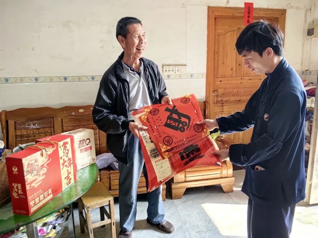 在活动中,每到一户。罗丛岩的道长们都与老人们促膝长谈,从生活起居到健康状况,从现实困境到内心期盼,都一一倾听,细细交流。这份“心贴心”的交流,让老人们倍感温暖。在送上新春祝福的同时,将一份份福字、门神、挂历、金玉满堂、水果、牛奶、面条等慰问物品送上,老人的脸上都洋溢着幸福的笑容,为这个春节增添多一份色彩。