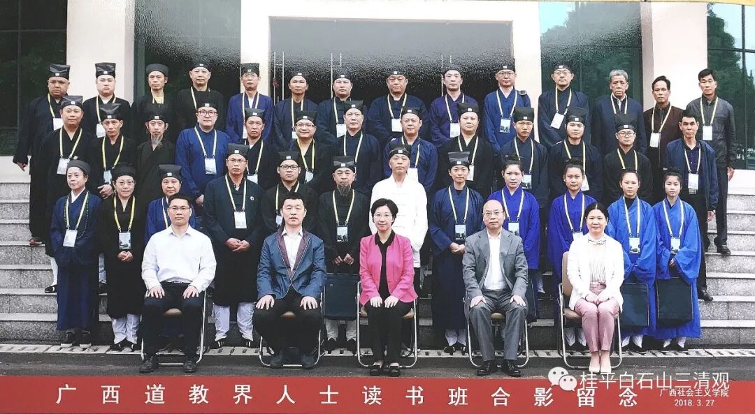 2018年3月26日至3月30日,由广西区党委统战部举办的“广西道教界人士读书班”在美丽绿城南宁,广西社会主义学院举行。出席开班仪式的领导有:广西区党委统战部副部长李银霞、广西社会主义学院副院长邓路遥、广西区党委统战部民族宗教处副调研员赵刚等。在培训班学习期间,广西民宗委副主任梁柳宁、广西区民宗委二处处长陈恩昭、广西社会主义学院副教授何文钜、潘宏纹等授课。本次读书班人员来自全区各地道教界人士共40人参加了为期5天的学习培训。