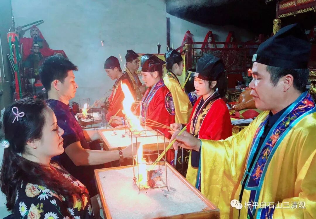 法会由广西道教协会副会长、贵港市(桂平市)道教协会会长、白石山三清观住持---陈应伟道长主持。市道协副会长陈应福等道众参加。