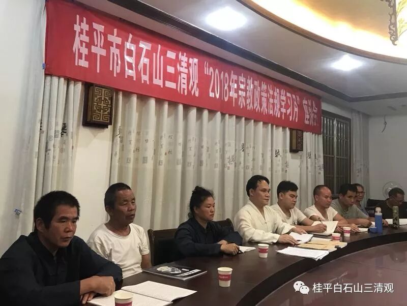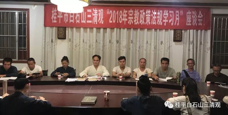 2018年6月14日,全国道教名山圣地、全国道教三十六洞天之第二十一洞天---白石洞天!广西桂平市白石山三清观举办“2018年宗教政策法规学习月”座谈会。