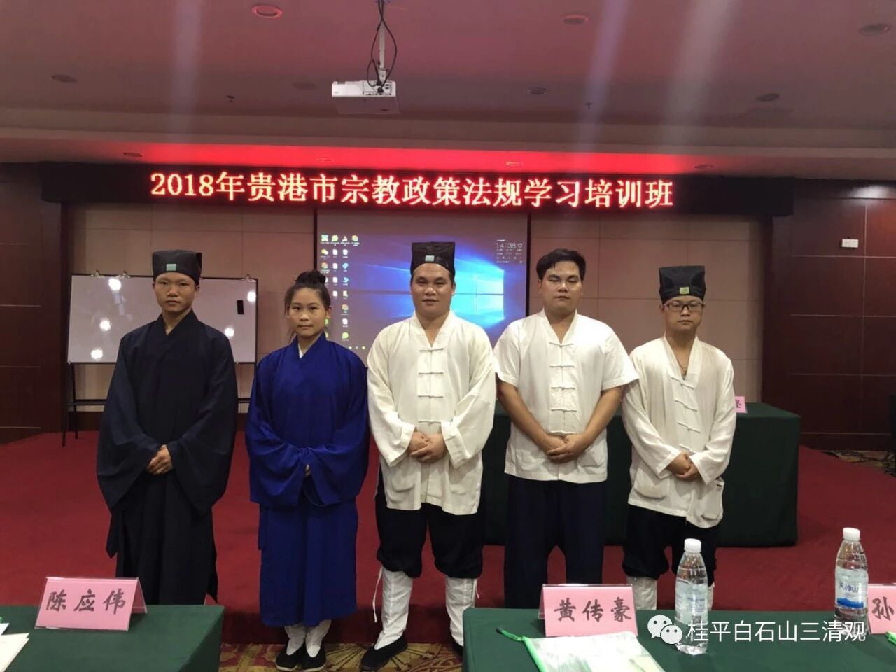 为认真学习宣传贯彻党的十九大精神、习近平新时代中国特色社会主义思想和《宪法》、《国家安全法》、《宗教事务条例》,全面贯彻落实中央统战工作会议、全国宗教工作会议精神,认真抓好“七五”普法和2018年度法治宣传工作,贵港市道教界,在陈应伟道长的带领下,积极组织、参加培训学习,并开展“宗教政策法规学习月”活动。