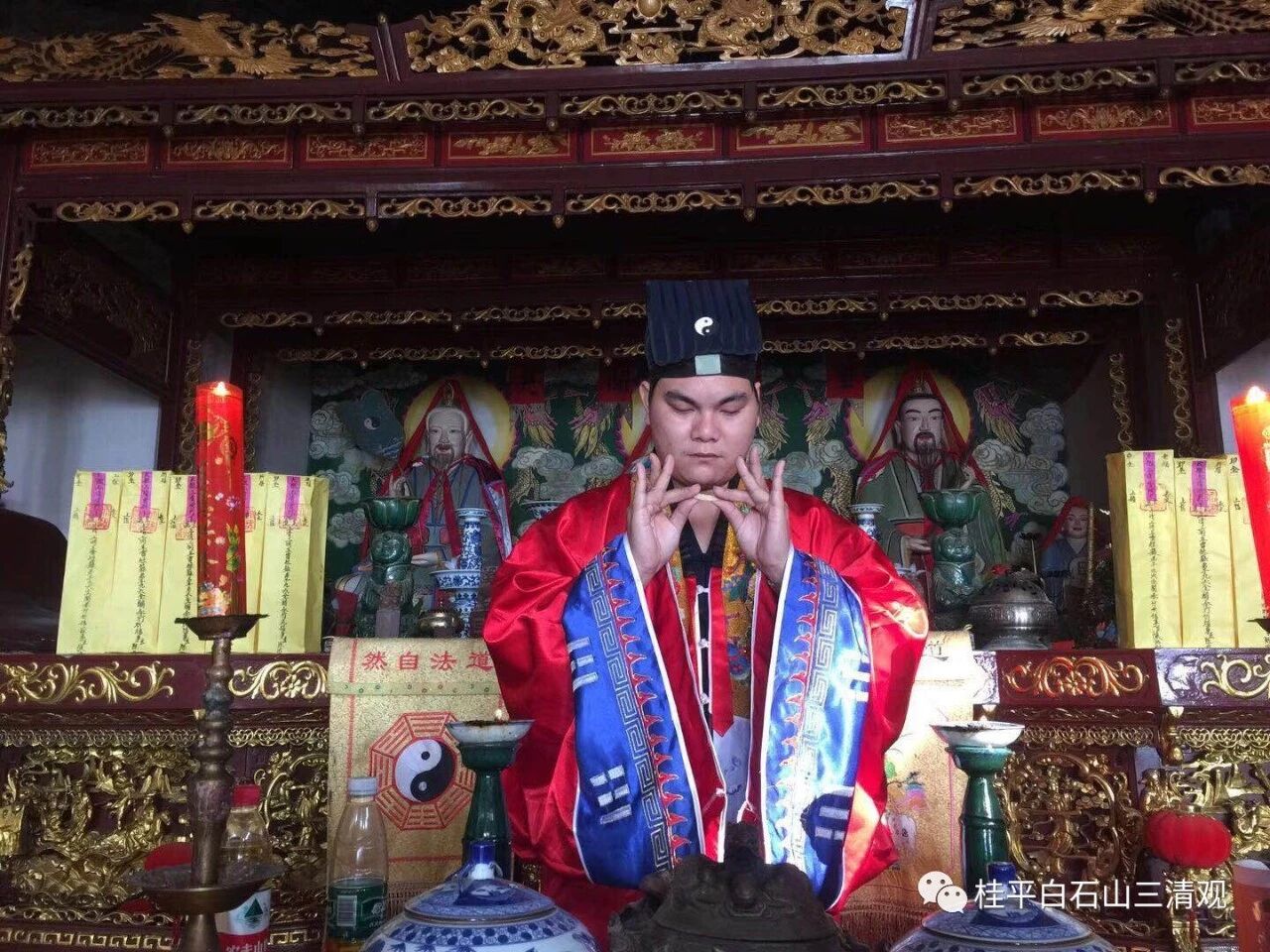 法会由广西道教协会副会长、贵港市(桂平市)道教协会会长、白石山三清观住持——陈应伟道长主持。