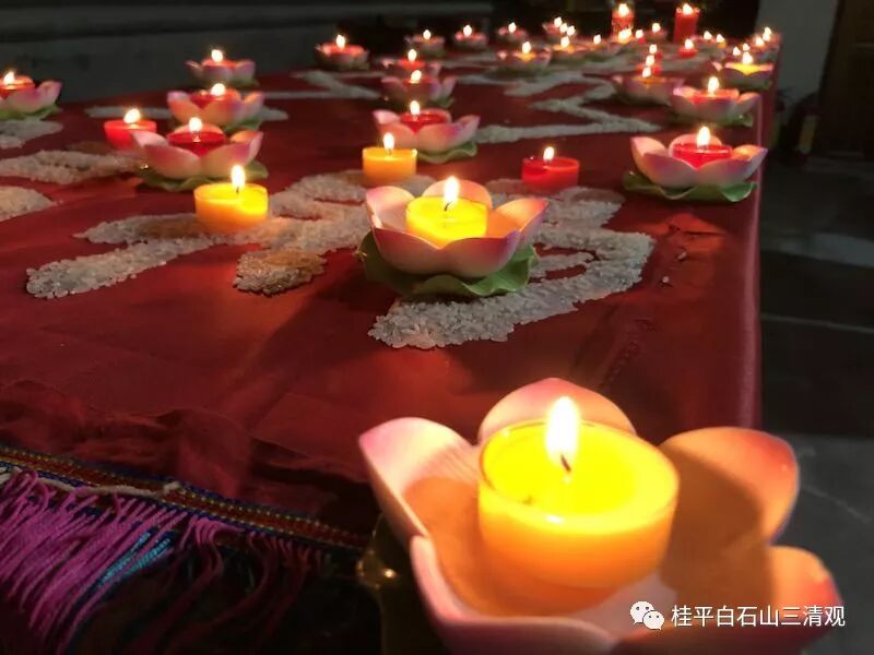 法会从十八日夜,7:30正式开坛。神光注照、诸天护佑,白石山三清观大殿里,瑞气氤氲、玄音袅绕,道众在陈应伟道长的引领下,共同参加开坛请圣、启疏、上表、礼神、拈香、献供等一系列活动。并长跪恭诵《慈航大士救世真经》、《三清宝诰》、《玉皇宝诰》、赞点《慈航延寿光灯》。