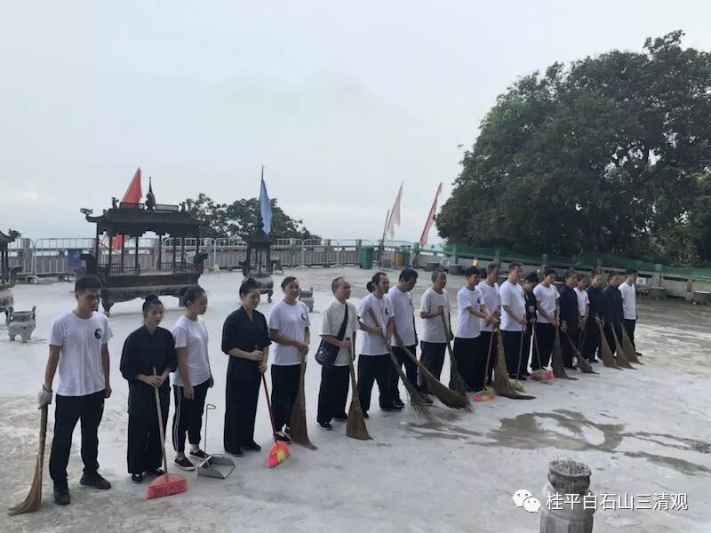 道众在辟谷期间参加“爱宫观、促环保”清洁大扫除活动