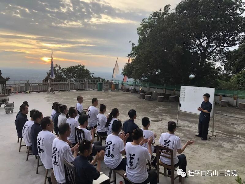 【回顾】:清晨的阳光从白石山那边穿过,照耀过来。陈应伟道长带领众学员,微闭目,背朝阳,行气血,吸收第一缕阳光的能量,渗入血液,抵达四肢。随着风声鸟叫声,那一瞬间,甚至感觉不到自己的心跳,这也许就是古人常说的“道法自然,天人合一”。