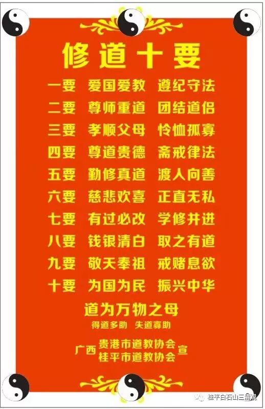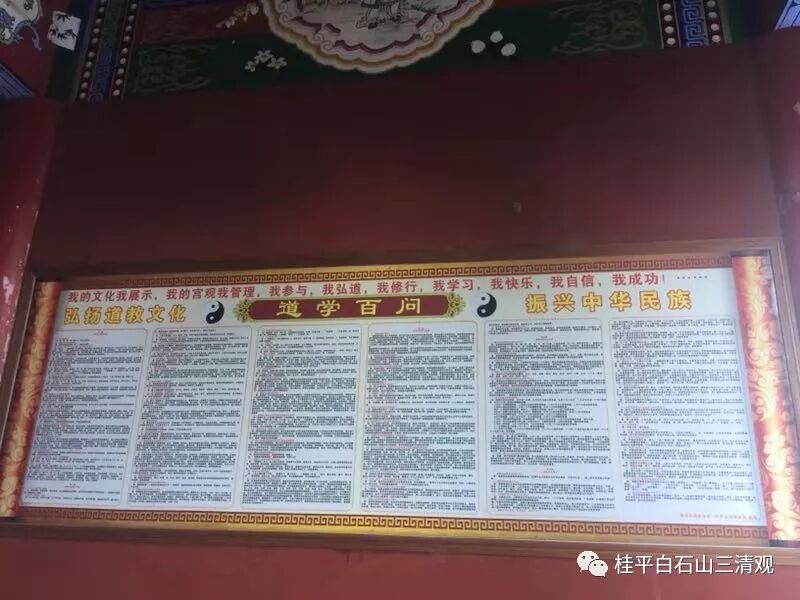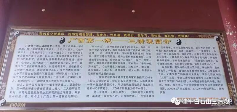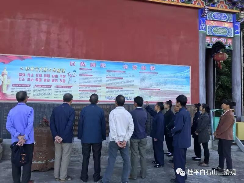 2018年11月5日,全国道教名山圣地、全国道教三十六洞天之第二十一洞天---白石洞天!广西桂平市白石山三清观举行“爱国爱教、振兴中华”之“五进”宫观活动。为展示白石山三清观作为全市道教界爱国爱教以及爱国主义精神的支持者和实践者,体现道教界坚决支持拥护党的领导!坚持道教中国化方向发展!更为进一步发扬全市道教爱国爱教的优良传统,展现新时代道教风貌,以实际行动表达对中国共产党领导和中国特色社会主义制度的拥护,并根据中国道教协会6月11日的倡议,以及根据全国性宗教团体联席会议第六次会议于7月31日共同倡议,广西道教协会2018年11月1日,桂道字【2018】18号通知,要求全区道教宫观在活动场所开展“五进”活动的工作要求。白石山三清观在全市积极响应倡议,通过召开座谈会共同宣传学习和统一部署开展“五进”宗教活动场所工作。升旗仪式上,中华人民共和国国歌在宫观上空响起,五星红旗徐徐上升,道众唱国歌、面向国旗行注目礼,现场庄严肃穆。