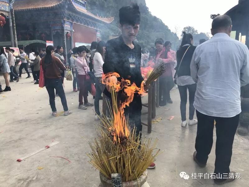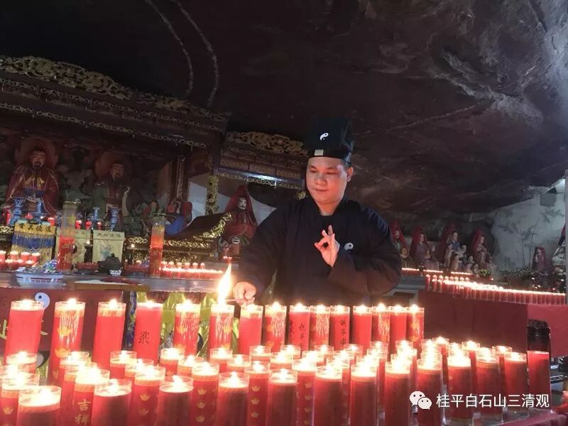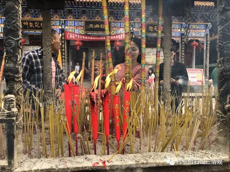广西桂平市白石山三清观2019春节供灯祈福法会,香客信众供香、上香、化宝、许愿、供灯祈福!